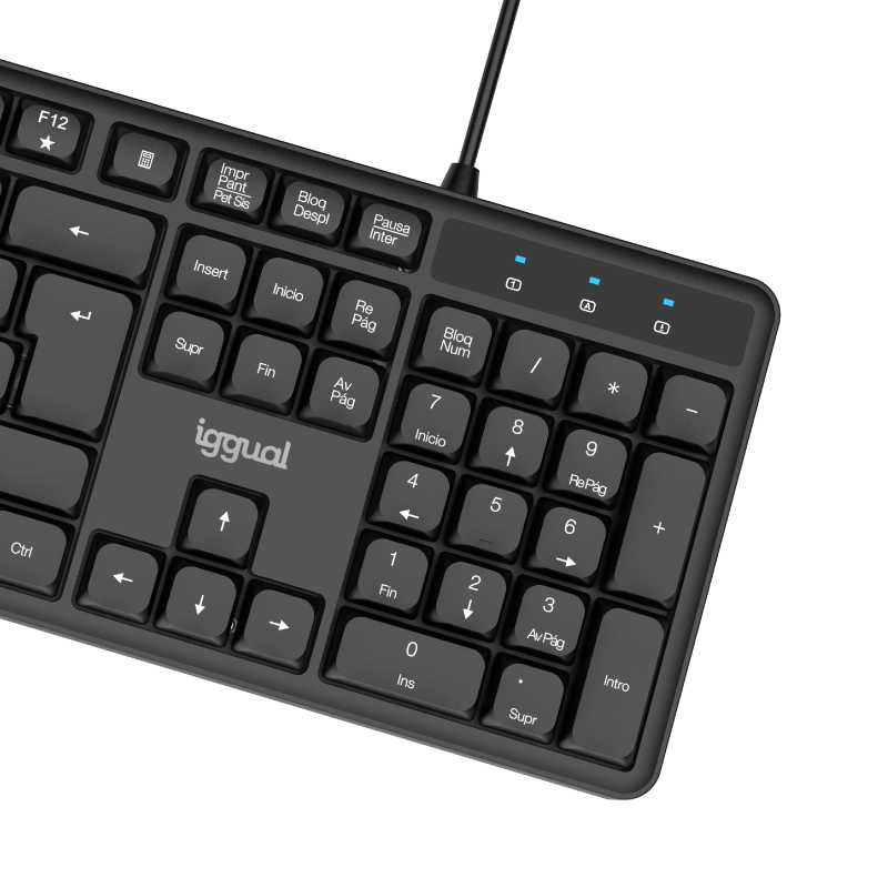 - Indicador LED de bloqueo de mayúsculas, numérico y desplazamiento
